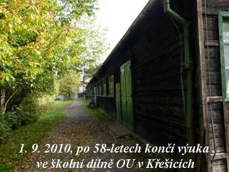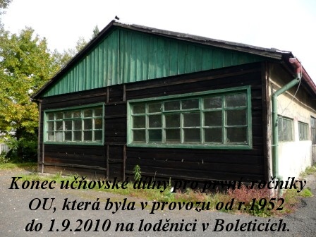 Bývalé školní lodě, v pozadí budova OU v Křešicích